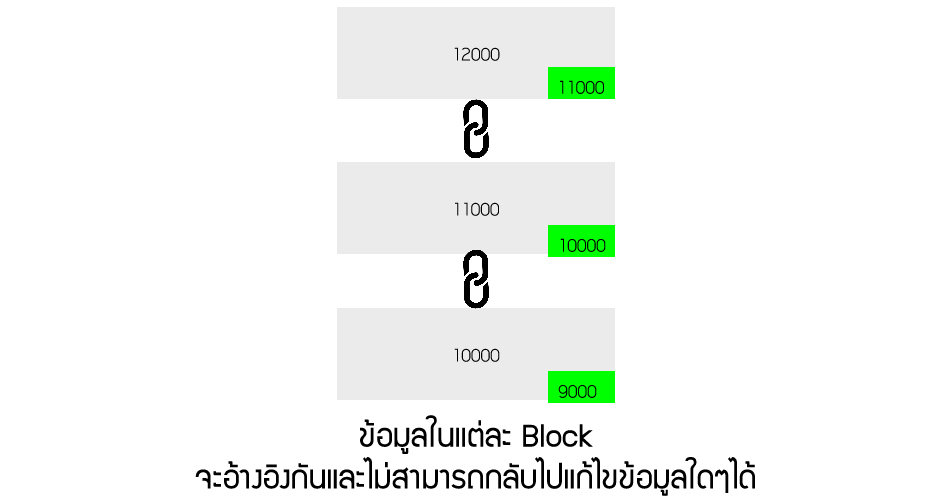 เทคโนโลยี Blockchain นั้นฟังดูเข้าใจยากแต่ด้วยพื้นฐานแล้ว Blockchain ไม่ต่างอะไรกับการบันทึกบัญชีเงินเข้าเงินออกแม้แต่นิดเดียว จุดที่แตกต่างคือ ข้อมูลแต่ละจุดหรือที่เราเรียกว่า Block จะมีการเชื่อมโยงกันอยู่เสมอเช่น ถ้ามีการโอนเงินจาก A->B 50 BTC บรรจุลงใน Block ที่ 1 และมีการโอนของ B->C 25 BTC อยู่ใน Block ที่ 2 ใน Block ที 2 นั้นจะไม่ได้เก็บเพียงแค่ข้อมูลการโอนของตัวเองเท่านั้นแต่จะเก็บข้อมูลการโอนของ Block ที่ 1 ก่อนหน้าด้วยและการอ้างอิงนี้เองเป็นที่มาของคำว่า chain ข้อมูลที่เก็บใน Blockchain จะถูกเก็บใน Block อ้างอิงด้วย Chain ทำให้หากเกิดการปลอมแปลงข้อมูลใน Block นั้นเป็นไปไม่ได้เพราะมีข้อมูลอ้างอิงถึงกันเสมอ