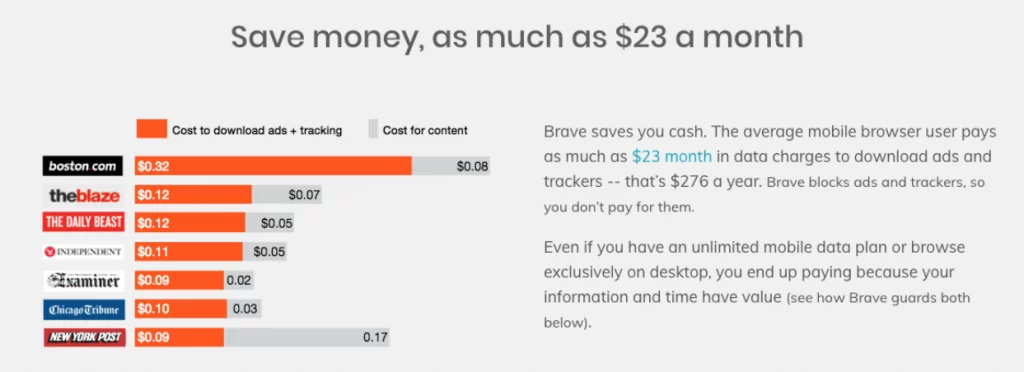 ในหน้า Default ของ Brave จะแสดงให้เห็นถึงว่าการใช้ Brave Browser นั้นประหยัดเวลามากเท่าไหร่ อีกหนึงของระบบ Shield คือมันสามารถเจาะทะลุ Anti AdBlock บางประเภทได้ทำให้เราสามารถท่องinternet ได้โดยไม่ต้องดู Ad. อีกด้วย