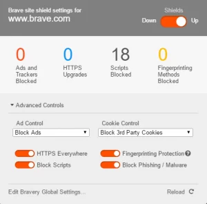 ถ้าคุณใช้งาน Brave คุณไม่จำเป็นที่จะต้องโหลด Ad Block Plugin มาใช้งานแต่อย่างใดเพราะโดย Brave มี Feature ที่เรียกว่า Shield ได้ Block โฆษณาเหล่านี้รวมถึงพวก Tracker, Spyware,Ransomeware ได้ทั้งหมด แต่บางครั้งอาจจะมีปัญหาที่ Javascript บางตัวไม่แสดงซึ่งเราก็สามารถตั้งค่าใน Shield ได้
