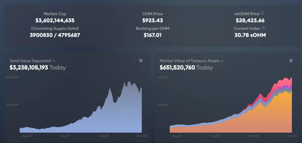 ปัจจุบันมี Market Cap ที่ 3,600 ล้านดอลลาร์ เป้าหมายหลักของแพลตฟอร์มคือการสร้างสินทรัพย์ที่เก็บมูลค่าได้ดีและมีความกระจายศูนย์ (Decentralized Store of Value) ใช้ชื่อว่า OHM เนื่องจากปัจจุบันในโลก DeFi จะมีความผันผวนสูงอยู่แล้ว Stablecoin มากกว่า 90% ก็ยังเป็นแบบ Centralized มาก เช่น USDT, USDC และ BUSD อาจถูกควบคุมโดยรัฐและเงินเฟ้อกัดกินอำนาจในการจับจ่ายใช้สอยอีกด้วย (Purchasing Power) OlympusDAO จะมีสินทรัพย์ค้ำมูลค่าและสินทรัพย์เหล่านั้นยังสามารถหาผลตอบแทนได้สม่ำเสมอ