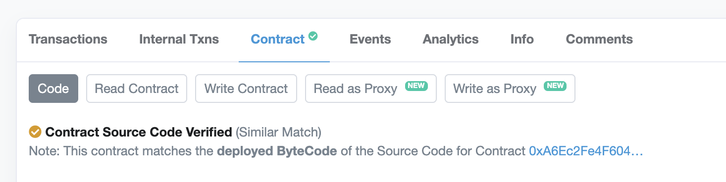 - ตรวจสอบว่า Contract Verify หรือยังซื่งถ้ายังไม่มีการ Verify มันจะมีความเสี่ยงที่เป็น Scam เช่นกรณี Wine Swap ที่ทำการ Exit Scam ไป