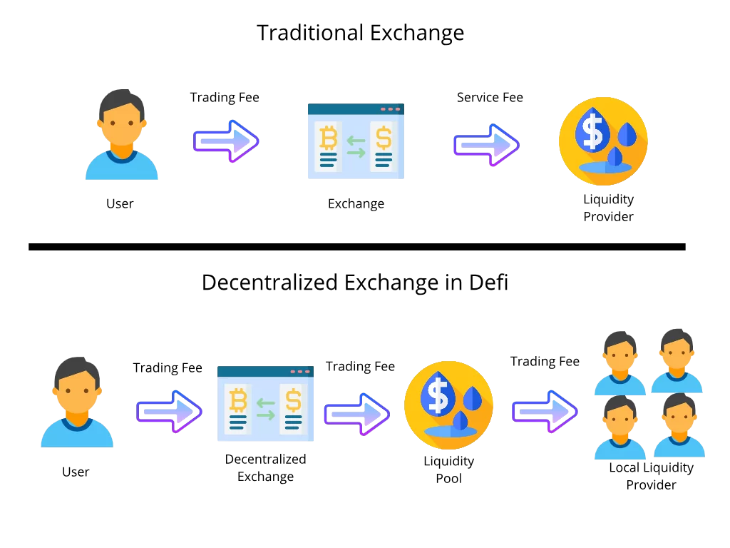 สิ่งที่น่าสนใจคือ DeFi เป็นการพัฒนาแนวคิดทางการเงินที่เดิมที่แล้วเราจะฝากเงินเข้าไปที่ตัวกลางอย่าง ธนาคาร ซักแห่งเพื่อให้เขาเป็นคนบริหารจัดการเงินของเราตามเงื่อนไขที่เราตกลงกับธนาคาร ซึ่งเราเชื่อในธนาคารให้ดูแลเงินของเรา