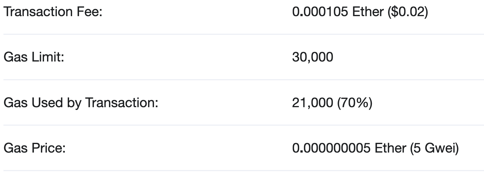 Gas Price = ราคาของค่า Gas ต่อหน่วย ที่คนยินดีจ่ายซึ่งจะมีความผันผวนไปตามความหนาแน่นของเวลานั้นว่ามีคนใช้เครือข่ายเยอะเท่าใด